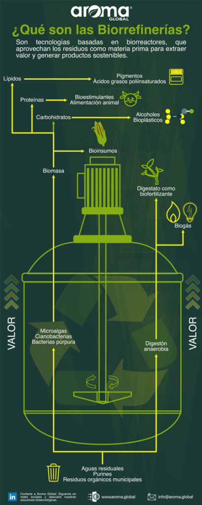 Hoy queremos compartir una infografía sobre ¿Qué son las biorrefinerías? y su impacto en el desarrollo sostenible y la innovación biotecnológica. En Aroma Global® entendemos la importancia de las biorrefinerías, pues nos mueve el liderar iniciativas que aprovechen su potencial para soluciones agrícolas, ambientales e industriales.