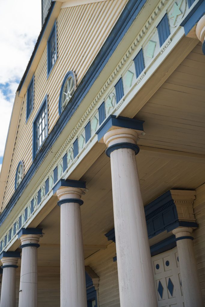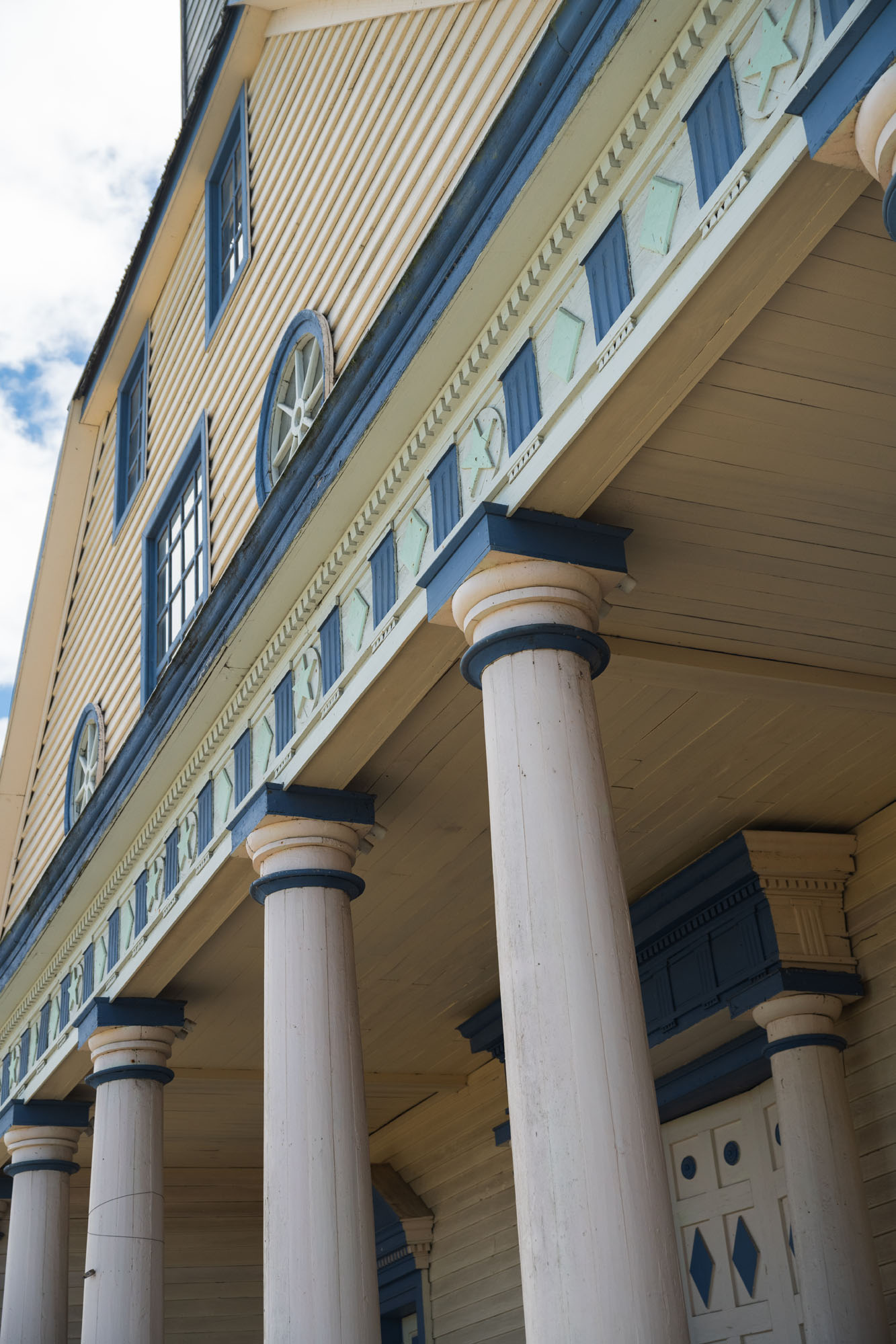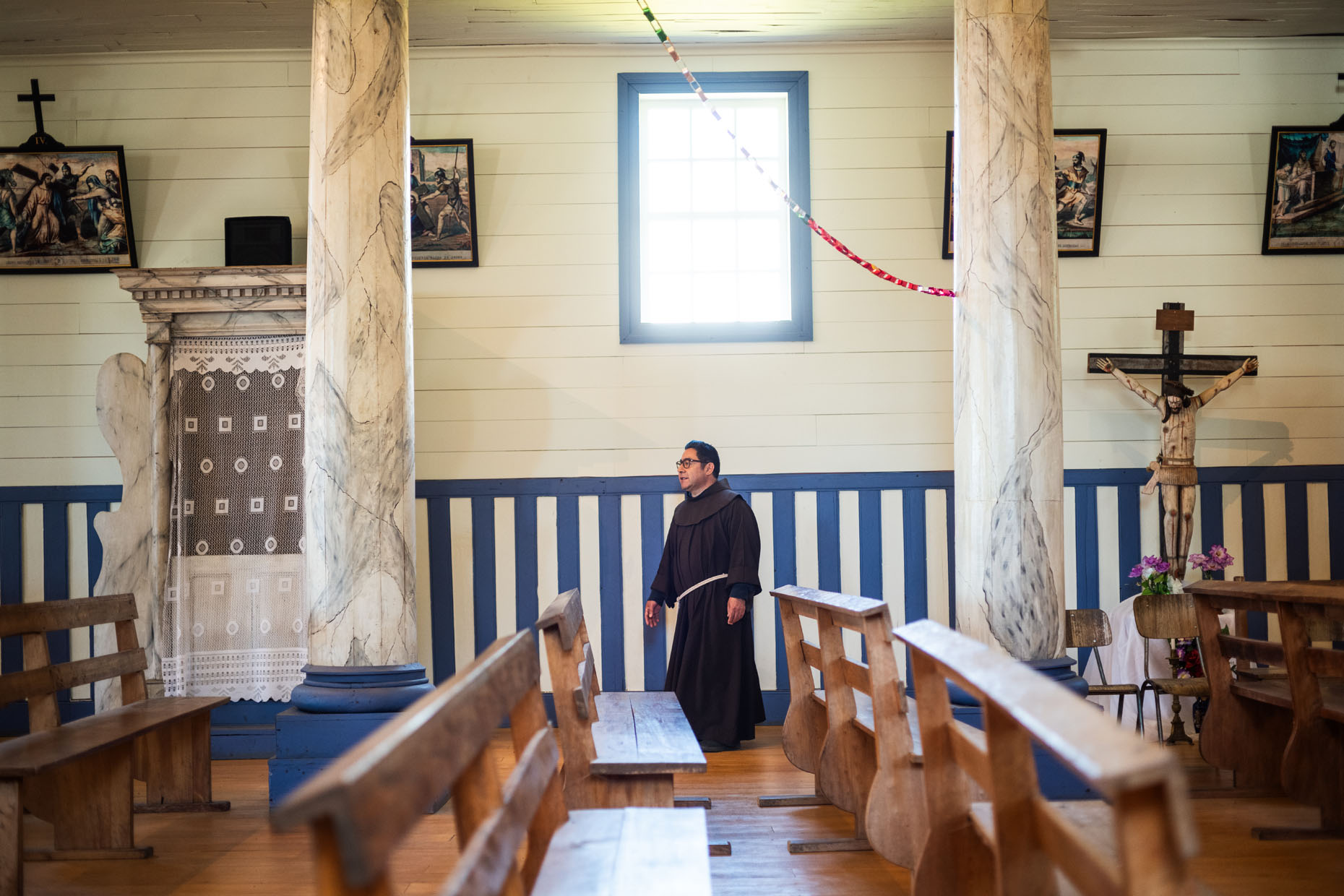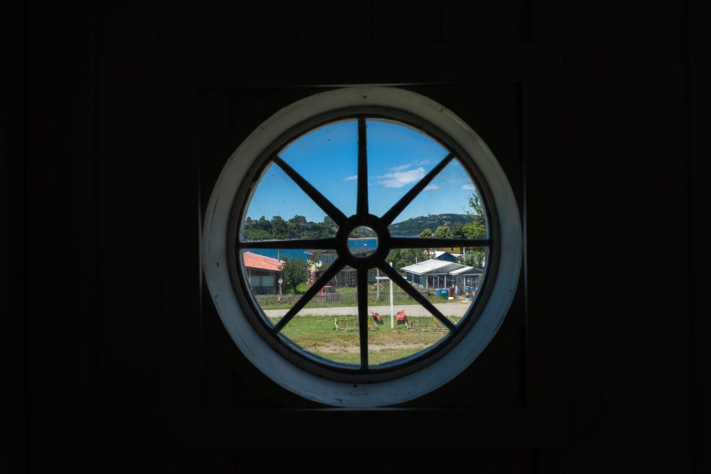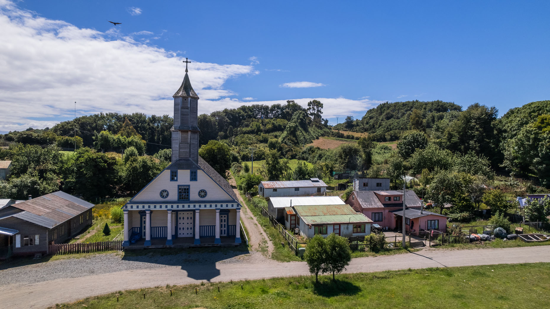 La iglesia de Chelín es una de las más apartadas del archipiélago, por lo que no es de fácil acceso. Sobresale por su llamativa fachada, decorada con seis columnas de estilo neoclásico y dos ventanas circulares.