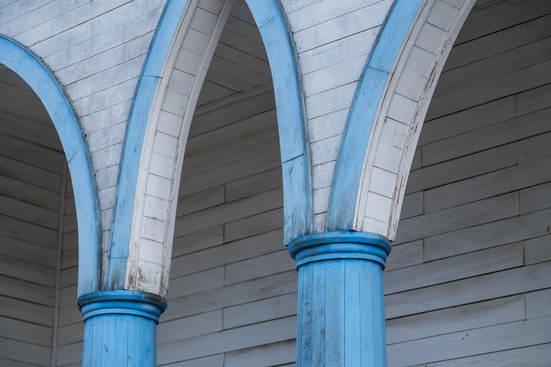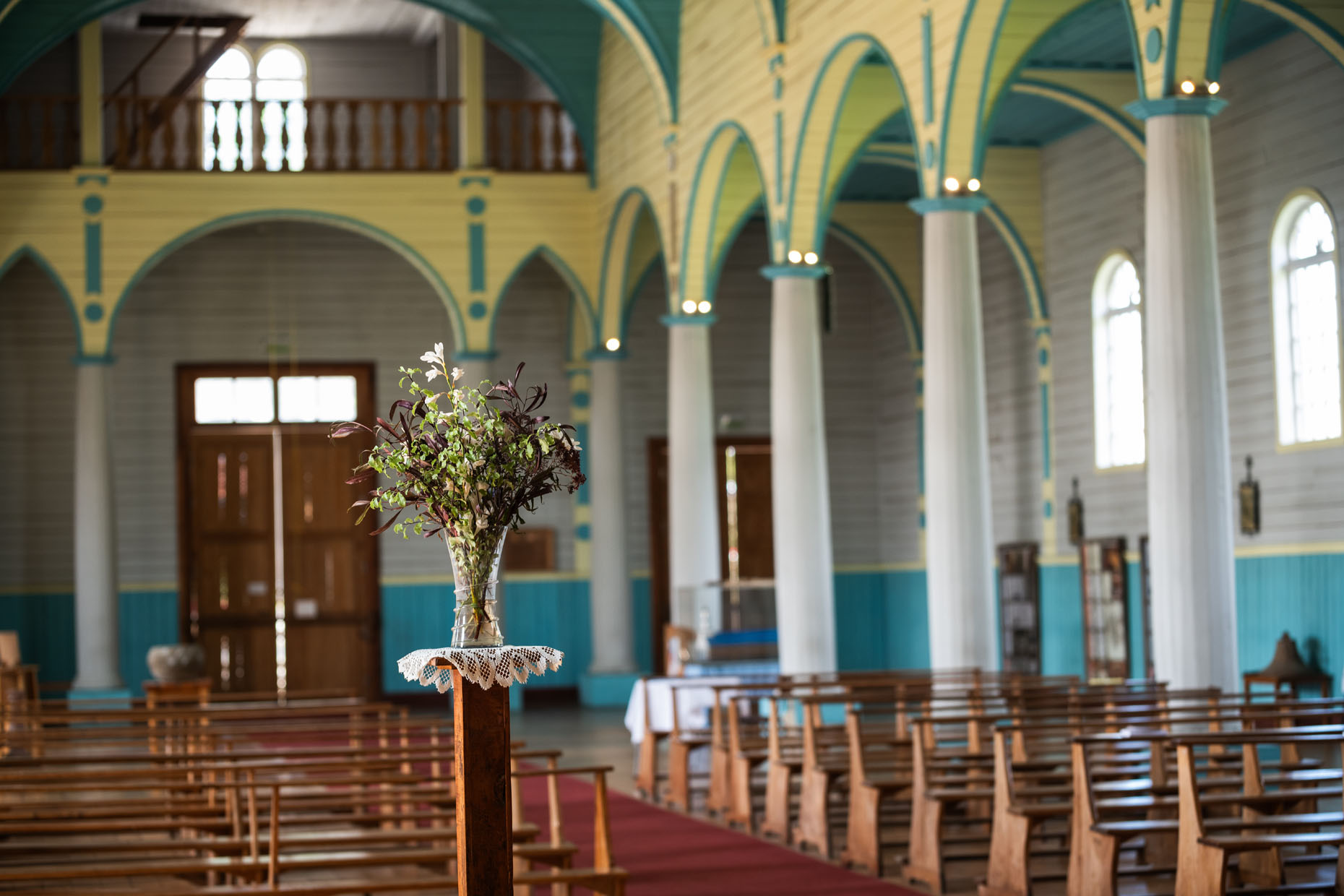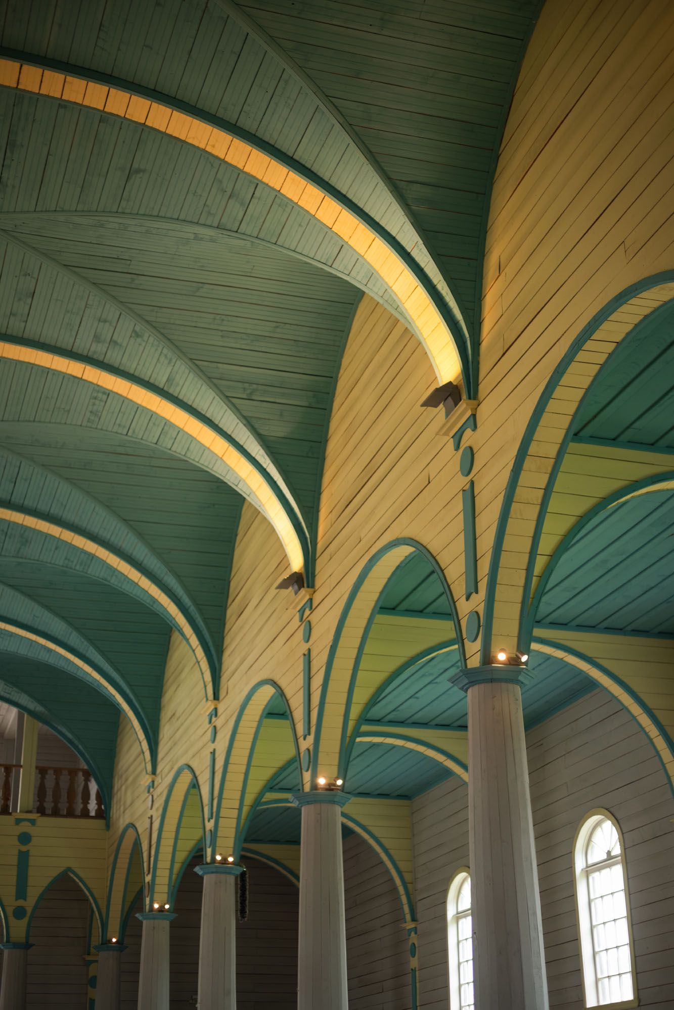 Combina diferentes estilos y está construida con diversas maderas nativas, como tepa, ulmo, tineo y alerce. Destaca su colorida bóveda de crucerías, característica de la arquitectura gótica. Estas bóvedas se construyen mediante la intersección de dos o más arcos que se cruzan y se entrelazan en el techo, creando una estructura compleja y muy decorativa.