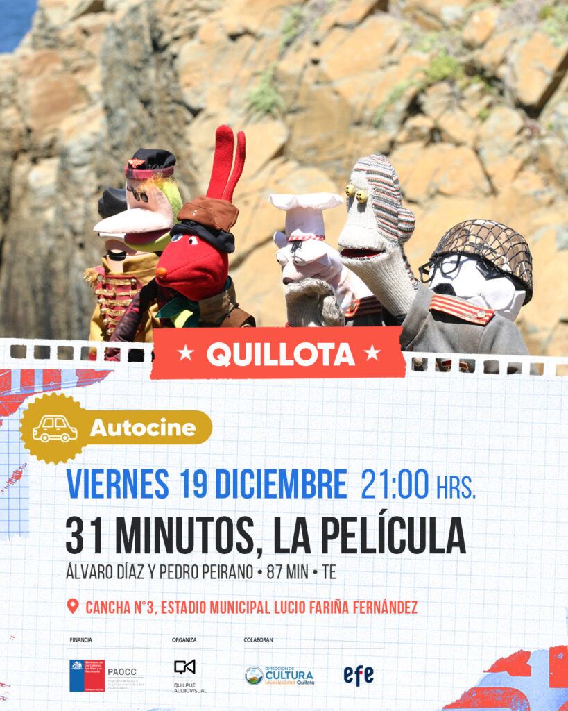 El Centro Cultural Quilpué Audiovisual, en colaboración con la Municipalidad de Quillota, dará cierre a la cartelera de autocine en la comuna, que comenzó el 28 de noviembre con la comedia “¿Cuándo te vas?, obra dirigida por Boris Quercia y continuó con la proyección de “Malta con huevo” de Cristóbal Valderrama.