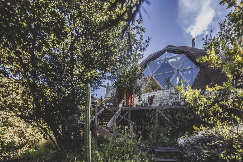 Varios eventos se han desarrollado aquí, donde además Pedro Narbona tiene un domo, en el que recibe a veces a los visitantes. Todo es sustentable, hecho con un enfoque amigable con el medioambiente. También así la bodega, que se encuentra más abajo en el terreno. Todo es desigual: estamos en un cerro, en una colina con huecos y vertientes, agua que cae directo acá a alimentar este espacio.