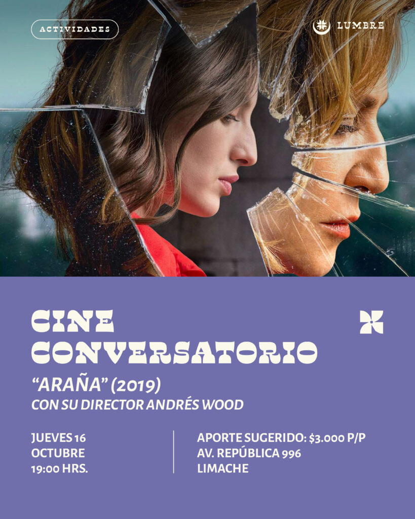 Fundación Lumbre tiene el agrado de invitar a la comunidad a una nueva edición de su ciclo de Cine Conversatorio, instancia que busca fomentar el encuentro, la reflexión y el pensamiento crítico a través del cine. En esta oportunidad se exhibirá la reconocida película “Araña” (2019), dirigida por el destacado cineasta nacional Andrés Wood.