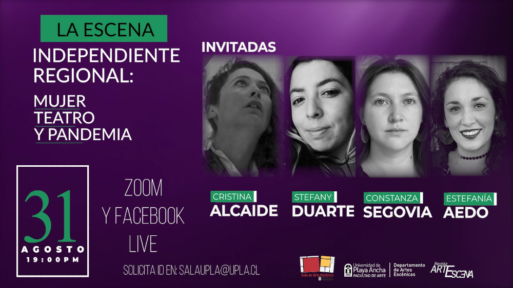 La conversación será con el moderador Andrés Hernández, en torno a sus procesos de creación, y en especial sobre la mujer en la teatralidad en pandemia. Esto es vía Zoom y Facebook Live, si quieres ingresar a la reunión Zoom inscríbete en salaupla@upla.cl