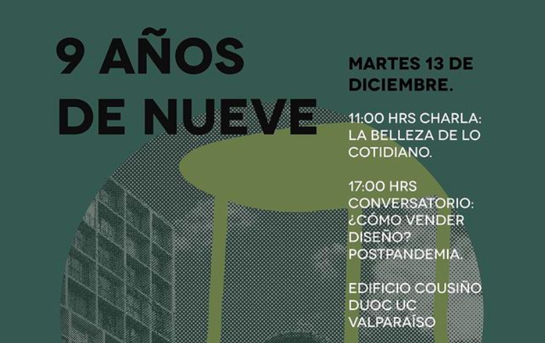 Nueve Design Studio está de aniversario y lo celebrará con diversas instancias: como charlas y una exposición que estará disponible hasta el 28 de diciembre en Edificio Cousiño (Duoc UC Valparaíso) con sus productos y prototipos.